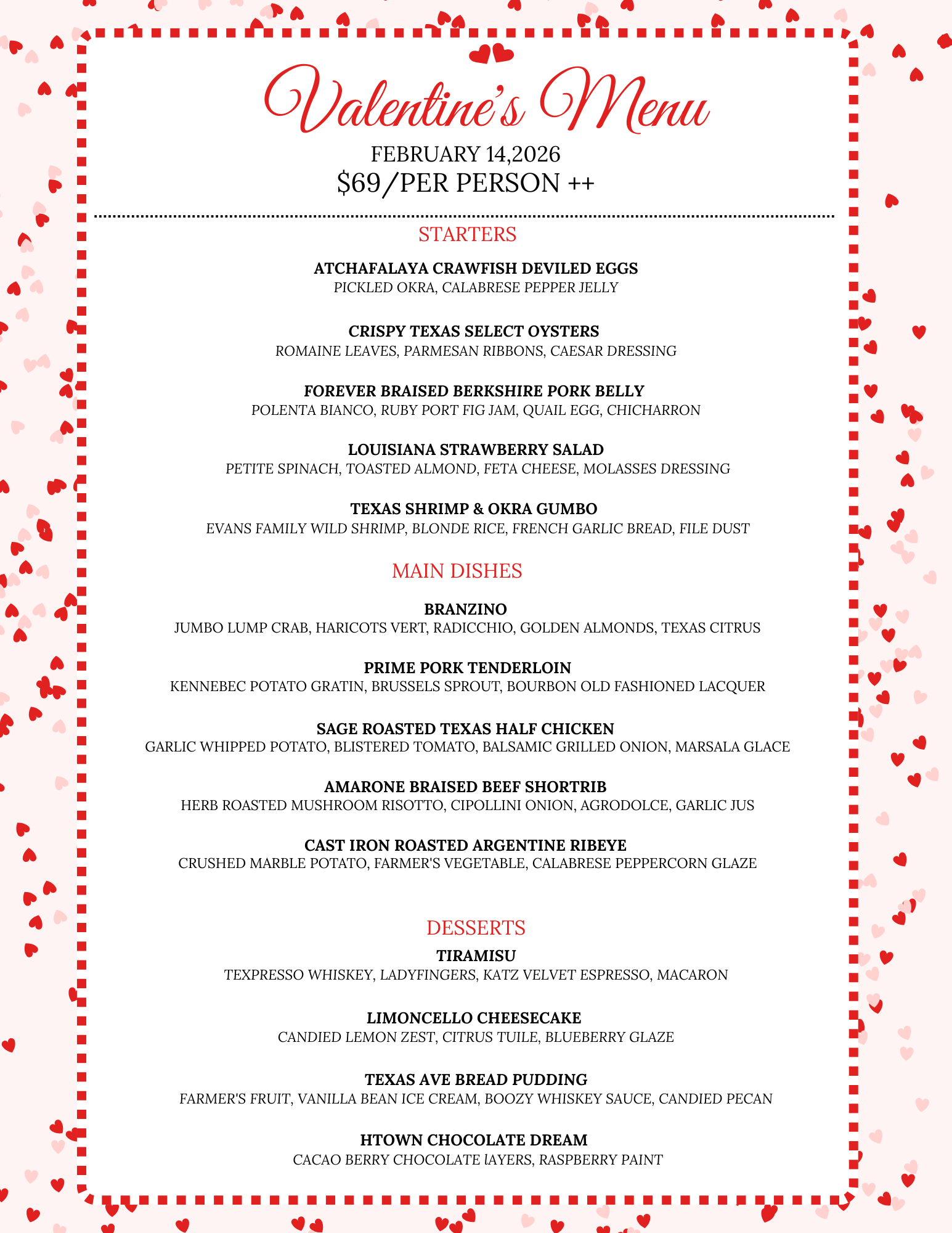 Osso & Kristalla 1515 Texas Avenue, HoustonCelebrate Valentine’s Day with a cozy, elevated Italian-American dinner in the heart of Downtown Houston. Whether you’re planning a romantic night out or a festive evening with friends, Osso & Kristalla sets the scene with warm hospitality, shareable dishes, and a welcoming neighborhood vibe.